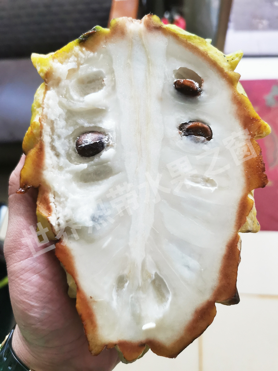 剥开霹雳黄龙释迦的外皮露出的白色果肉,散发着浓郁的香气,品尝一口,其口感如同果冻 果肉紧实且富有弹性,细腻而爽滑,香甜可口,甜度可高达25度。霹雳黄龙释迦不仅美味,营养价值高 富含多种矿物质、铁、钙、 维生素C以及碳水化合物。这种果实不仅可用来制作冰淇淋沙拉,还能作为酿造释迦酒的原料等。