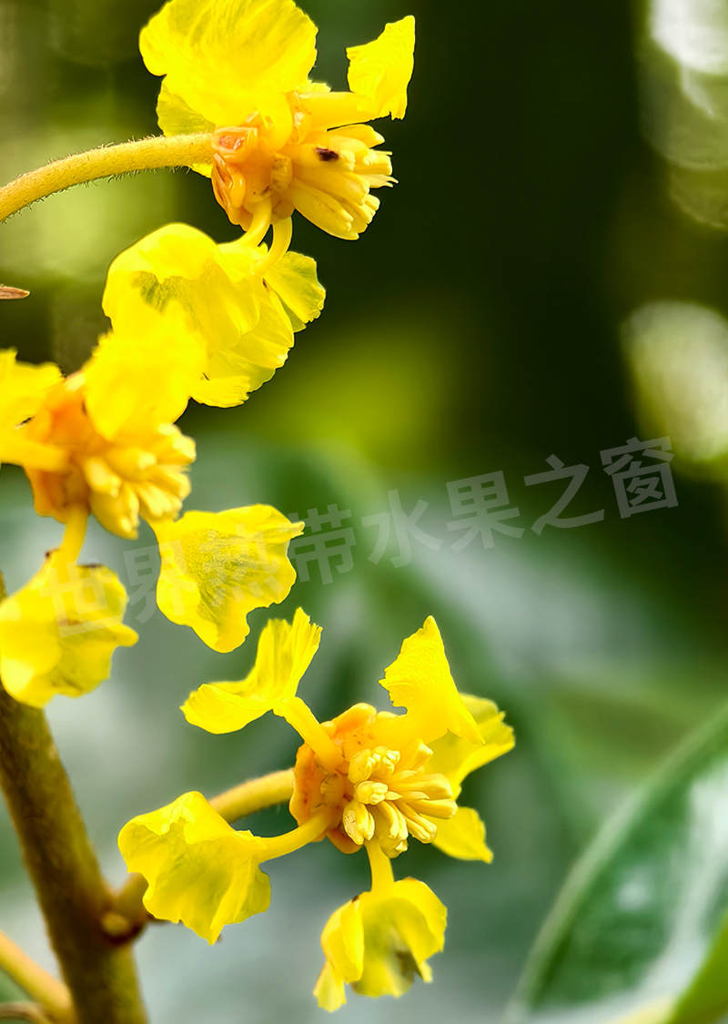 南西果,原产于中美洲和南美洲部分地区。其花穗绚丽多彩,由明黄色渐变为橙红色,最终结出成簇饱满的小圆果,极具观赏性。其果实小巧圆润,表皮光滑,成熟时呈现明亮的金黄色,外形酷似樱桃。
