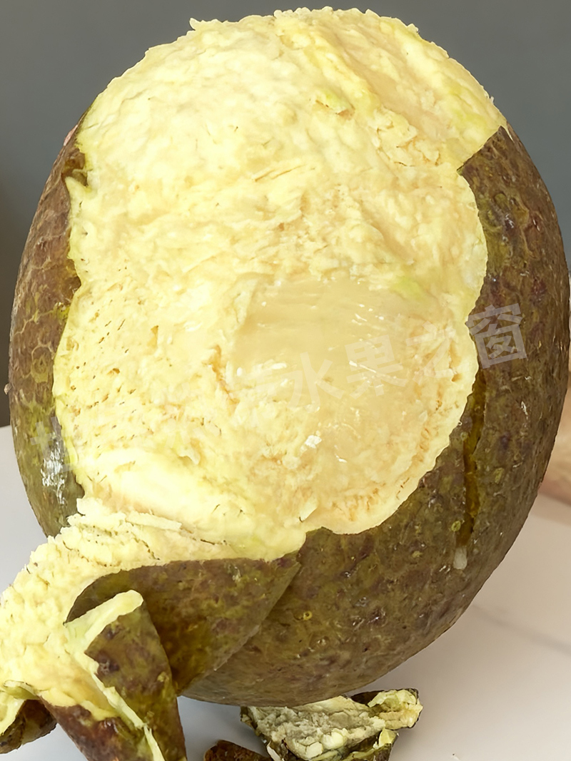 市场上常见叶片光滑反光、具大量种子、果肉黄色的树种,多为绿化用有籽面包果,不可食用。