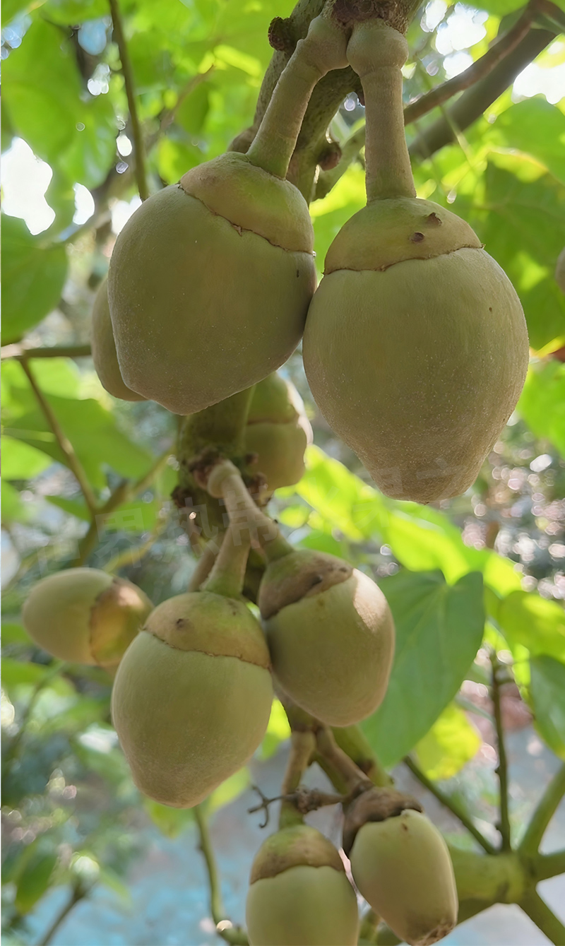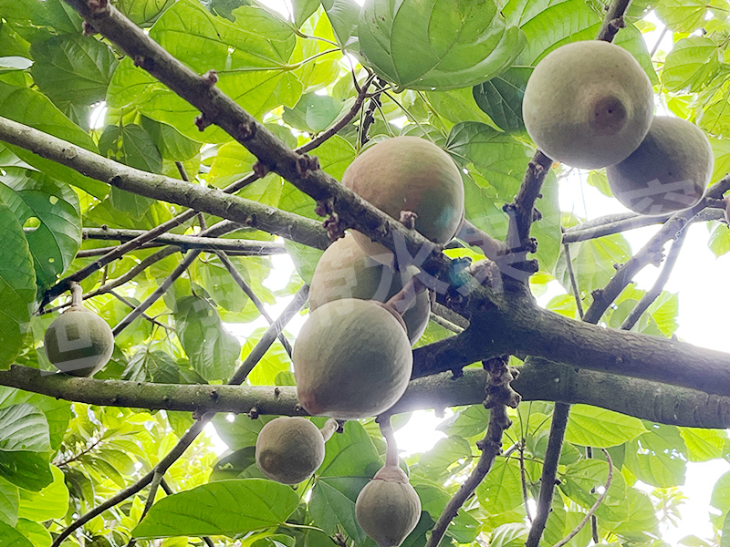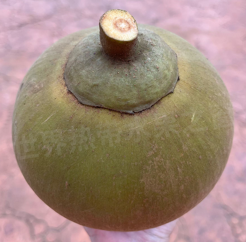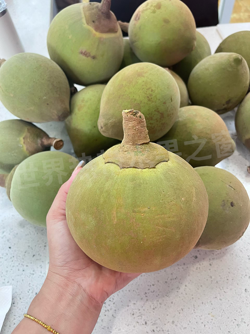 椰蜜果,原产于南美洲,属于锦葵目木棉亚科由于果实的质感像椰子又形似柿子,所以也被称为椰柿,雌雄同株,适宜在温暖湿润的气候条件下生长,树势健壮,管理轻便,果实产量高,品质优,具有较高经济价值。同时,椰蜜果还具有较高的观赏价值,其叶片巨大、美观,且有着怡人香气,椰柿的花和榴莲花有些相似,直接长在树干上。长出的果实簇生在树干上,通常能长到1斤以上。其果肉颜色橙黄,带有浓郁的芒果和哈密果混合味道,里面果肉似芒果,外部皮部类似哈密瓜,口感丰富诱人。