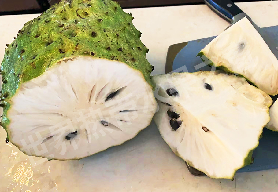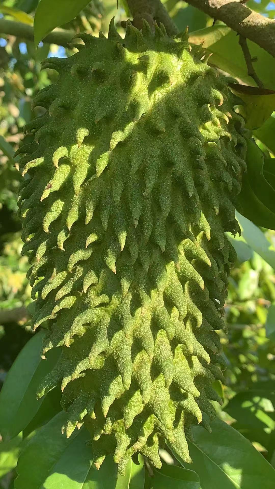 在海南琼海的“世界热带水果之窗”,一种外形独特的水果常让游客产生疑惑——它究竟是榴莲,还是释迦?其实,它的名字叫作“红毛榴莲”,学名刺果番荔枝(Annona muricata),属于番荔枝科番荔枝属的常绿乔木。虽然名称中带有“榴莲”,但它与榴莲并无关系,反而与释迦是近亲。
