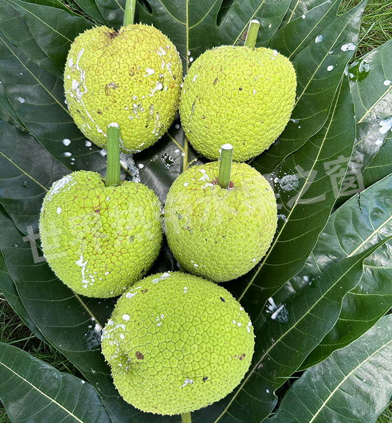 无籽面包果,一种既可作为水果、又能充当主食的热带作物,属于桑科波罗蜜属,和波罗蜜是亲兄弟,原产于太平洋群岛及印度尼西亚、马来西亚等地,海南盛大现代农业开发有限公司成功引种并于2022年在海南实现挂果。